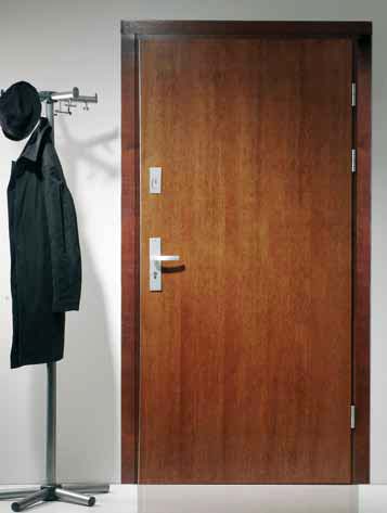 Dřevěný rám obložený dvěma HDF deskami, výplň tvoří speciální konstrukce Polskone, borovicová zárubeň (lze použit rozšiřující panely), dubový práh o výšce 20 mm.