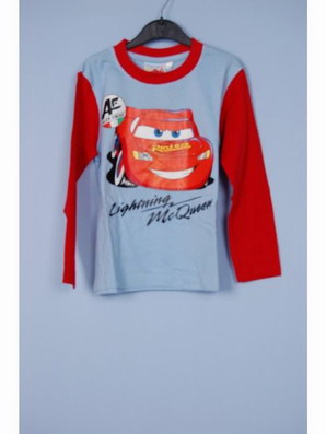 Vrchní díl - tričko s dlouhým rukávem je ve světle modré kombinaci s červenou.