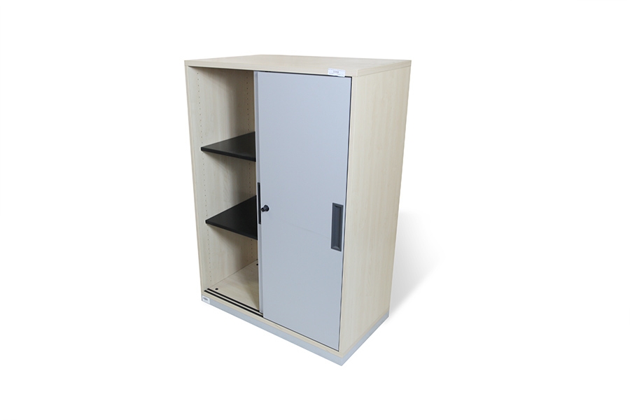 Nabízíme použitou kancelářskou skříň s posuvnými dveřmi, výrobce: Steelcase, rozměry: 116x80x43 cm, provedení: šedá/javor.