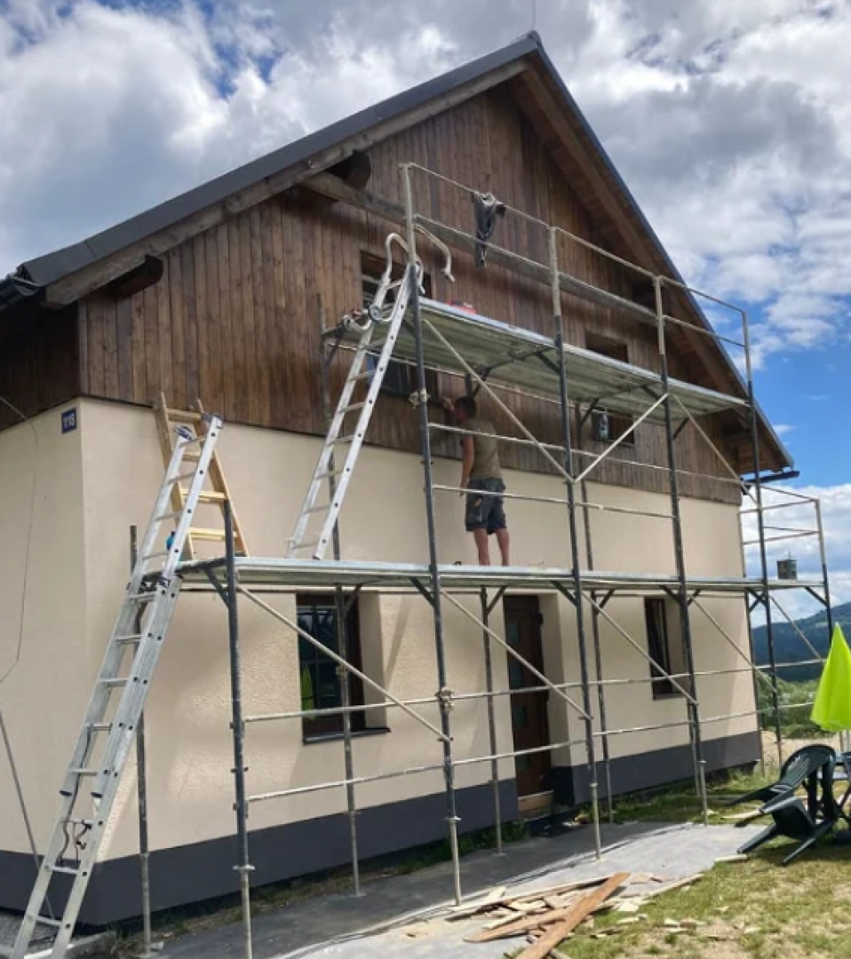 Zateplujeme starší rodinné domy v rekonstrukci, novostavby, renovujeme a zateplujeme fasády prvorepublikových vil. Realizujeme sádrokartonové podhledy, snižování stropů včetně izolace, sádrokartonové předstěny, sádrokartonové příčky se zvukovou izolací, s posuvnými dveřmi v pouzdru i s klasickými zárubněmi, půdní vestavby ze sádrokartonu. Dále provádíme stříkané fasádní dekorativní omítky